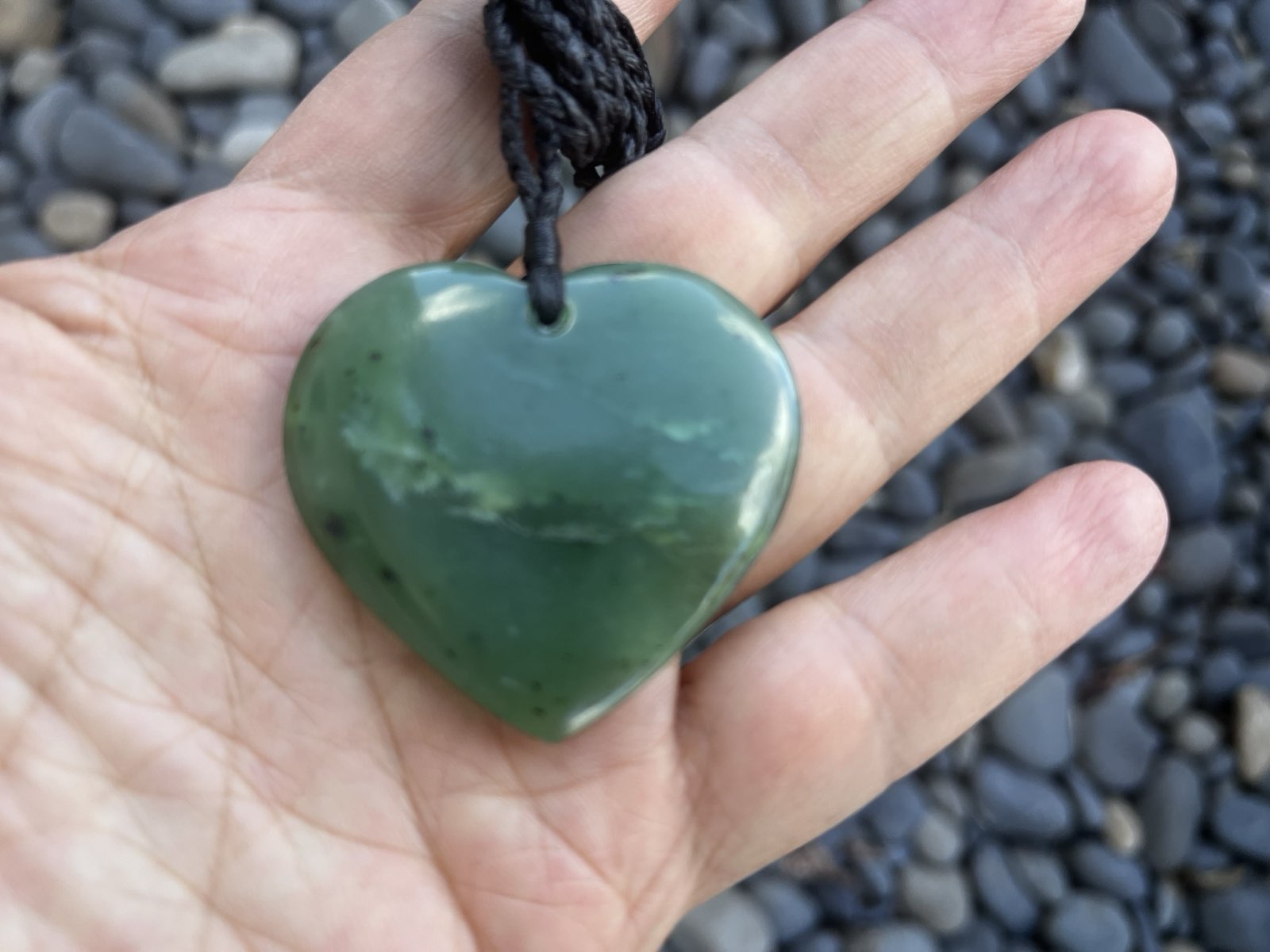 The Greenstone Nephrite Jade Heart Pendant (#H40CS) is a beautifully carved symbol of love, connection, and harmony. Crafted from genuine greenstone (nephrite jade), this elegant pendant showcases both cultural significance and refined artistry.