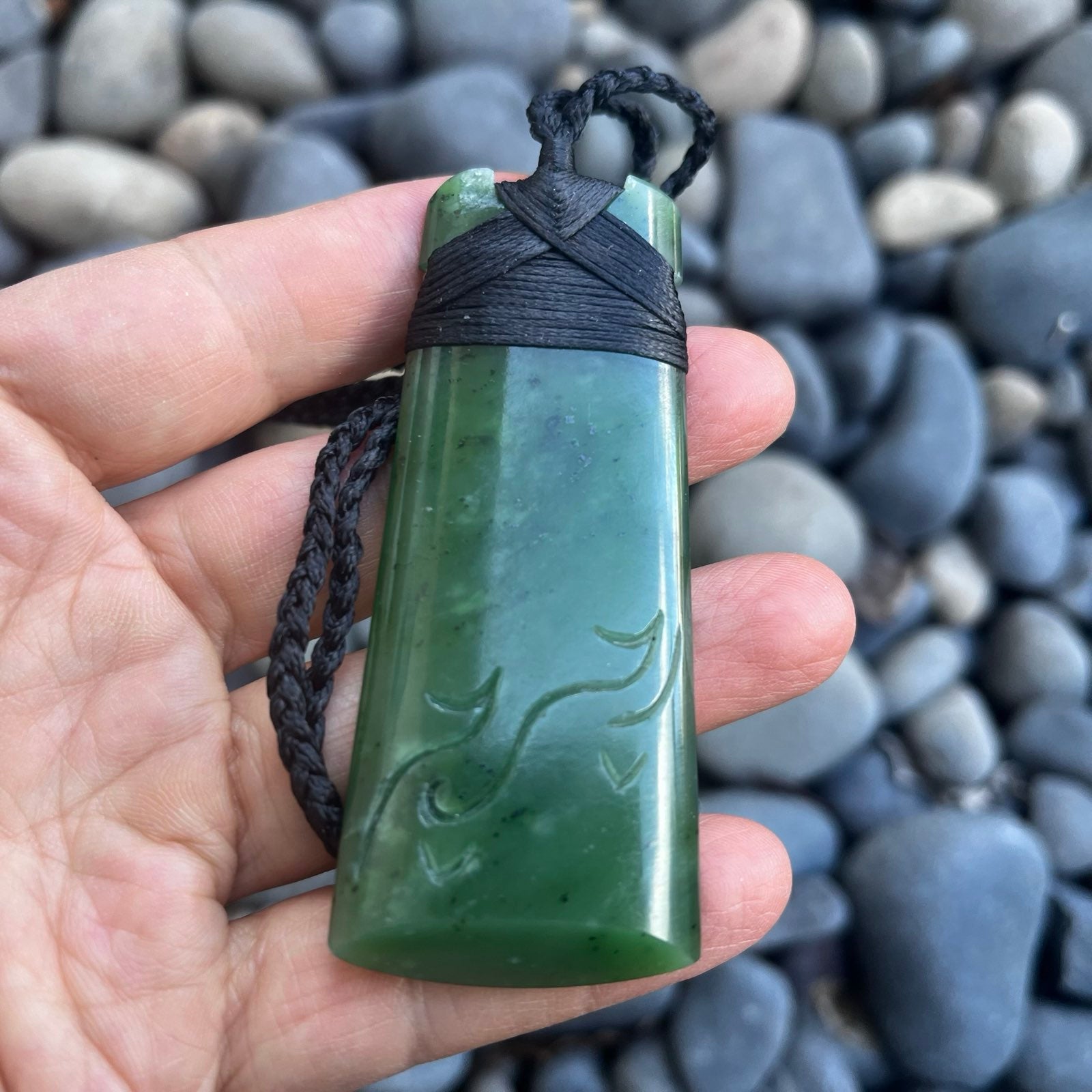 Toki Pendant with details – Greenstone Nephrite Jade 80×30mm