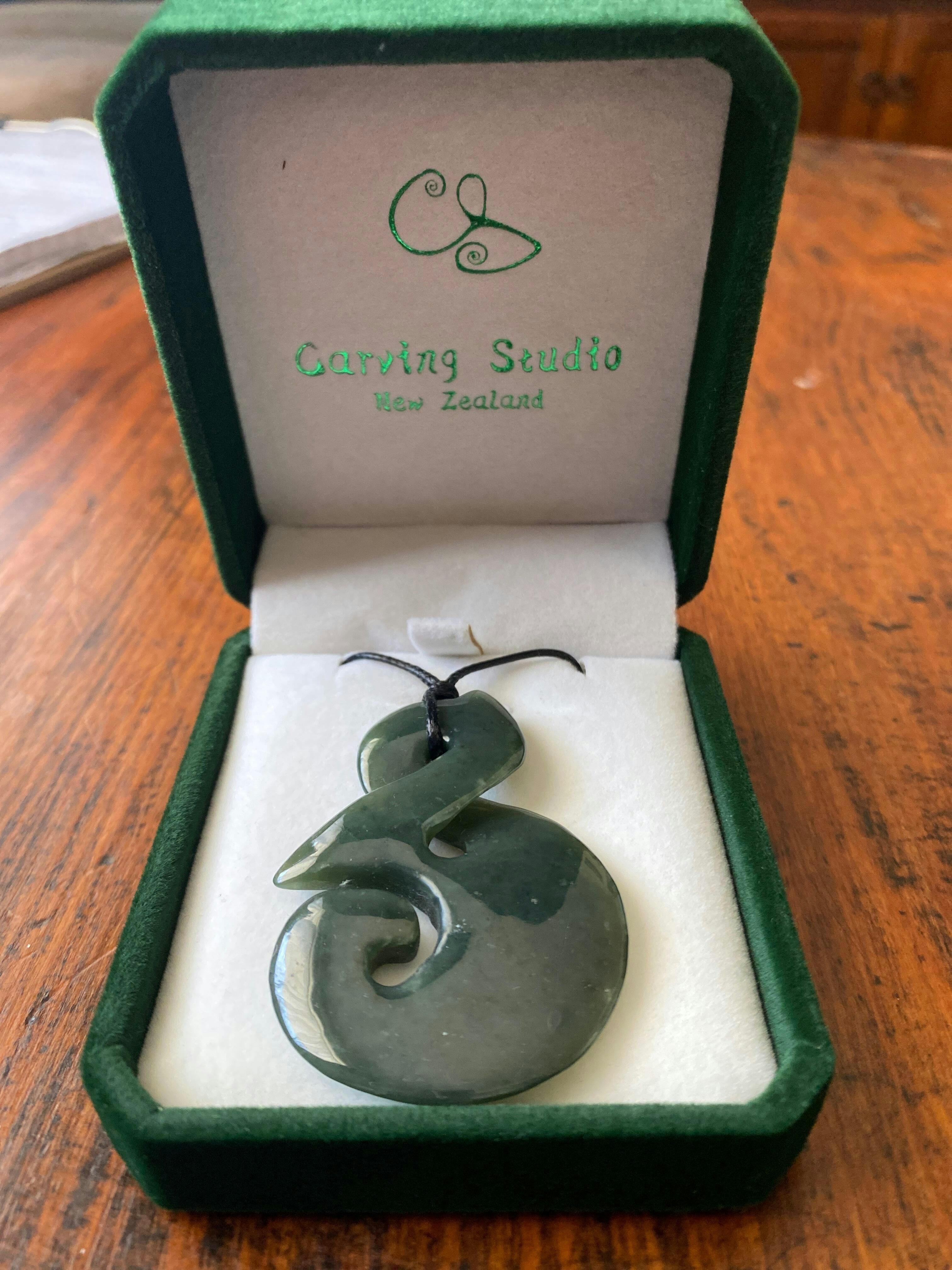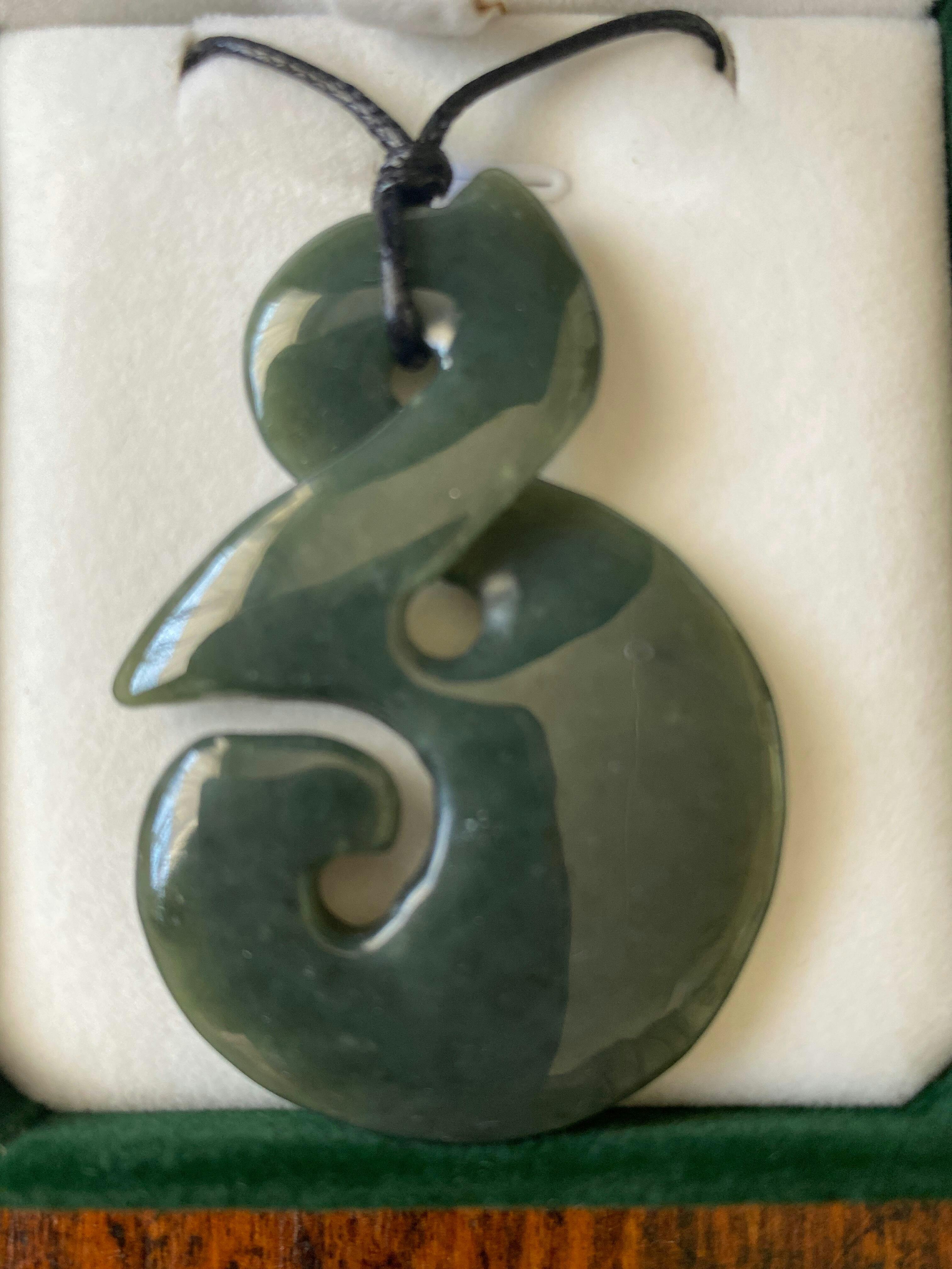 Greenstone Nephrite Jade X-Large Twist with Koru Pendant – 55×38mm with Gift Box