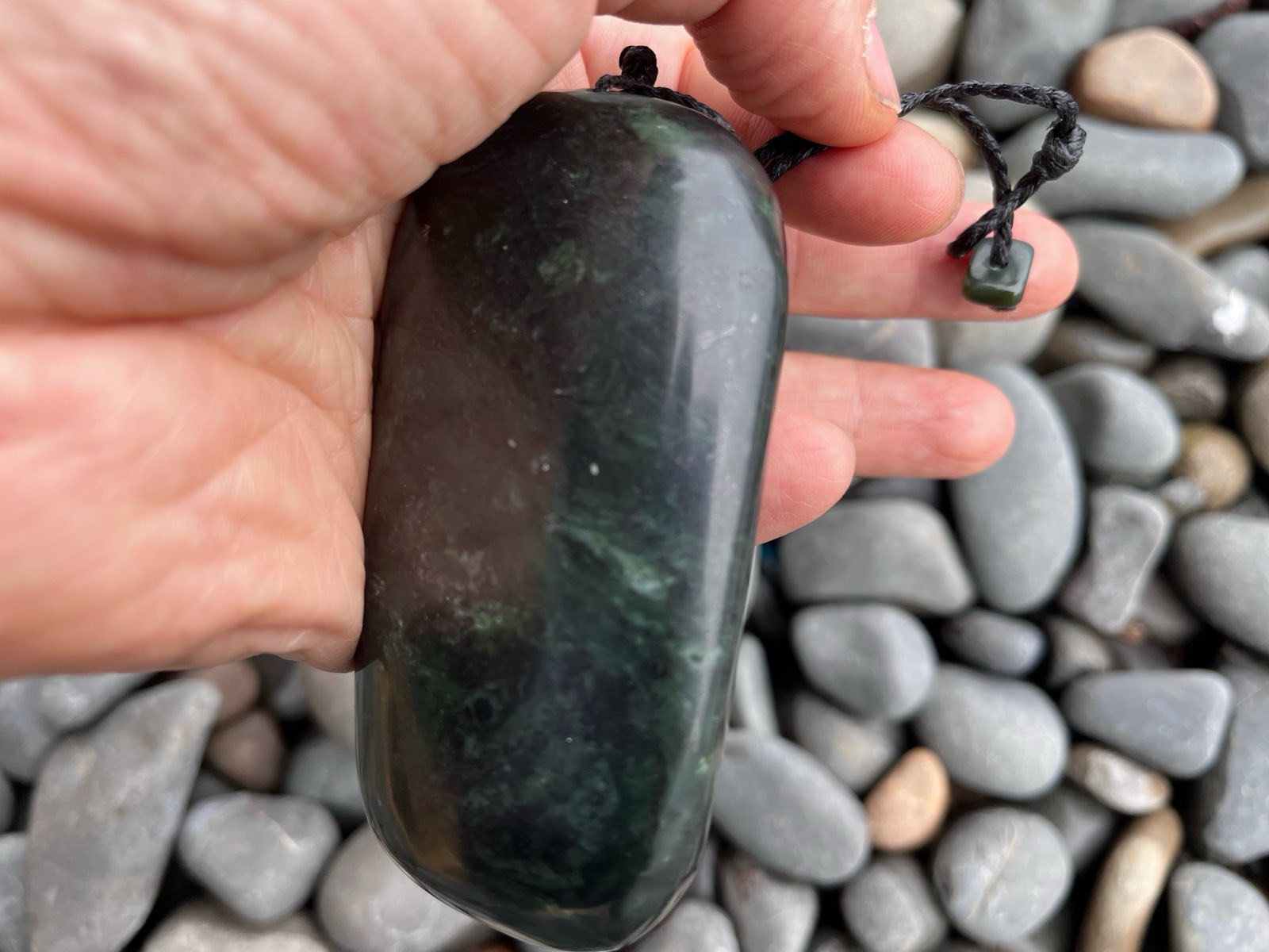 X-Large Greenstone Pendant with Braided Cord – Unique Heavy Nephrite Necklace